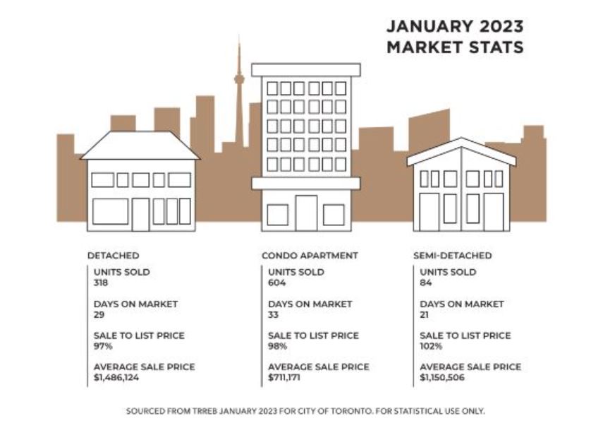 The Toronto Regional Real Estate Board (TRREB) has released the MLS sales data for January 2023. With 3,100 home sales reported last month, transactions were down 34% from the 10-year average and 44.6% year-over-year.